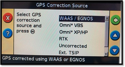 - On the GPS Correction Source screen, select WAAS /EGNOS: